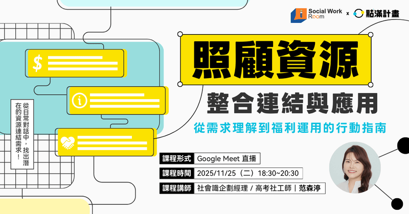 這堂課,我們將從需求辨識與資源對應出發,說明如何從服務對話中理解個案語言線索,