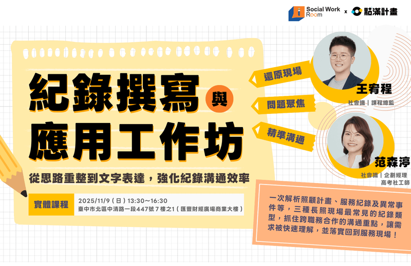 【實體工作坊】紀錄撰寫與應用工作坊:從思路重整到文字表達,強化紀錄溝通效率